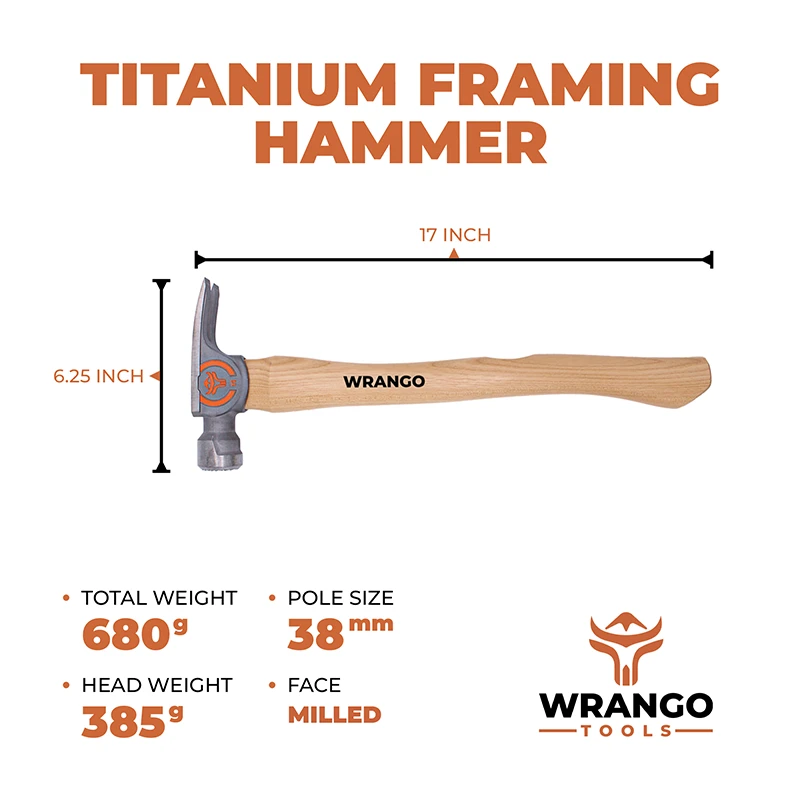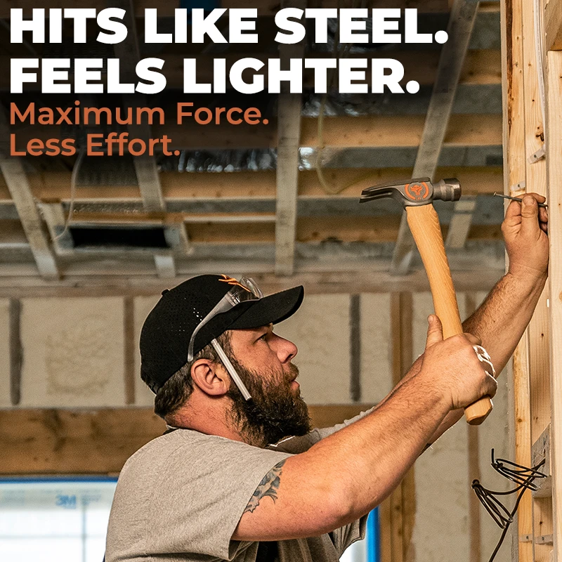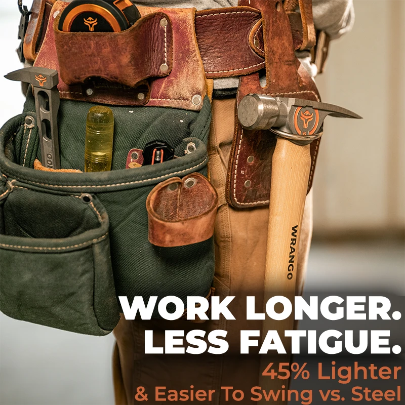 The Wrango Tools titanium framing hammer with 17in hickory handle will reduce your carry weight and save your shoulder. Titanium is 45% lighter with the same strength as steel. Titanium absorbs shock and vibration impact better than steel, saving your hand, arm, elbow, and shoulder from unnecessary fatigue. Our titanium is also tougher and more flexible than steel, so it has superior resistance to breaking, cracking, and chipping under impact and stress. As a professional general contractor or framer, you can only withstand so much wear-and-tear on your body. Stop putting your body through unnecessary pain and switch to titanium now.